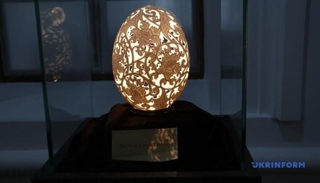 У Києві відкрили виставку «Скорботний шлях Бахмута» / Фото: Євген КотенкоВін підкреслив, що колекція виконана у техніці «різьбленки» – прорізної різьби по пташиному яйцю без будь-яких хімічних домішок. Автор розповів, що виготовлення займає майже весь робочий день - з восьмої до сімнадцятої, і на одне таке яйце йде 1,5-2 місяці.